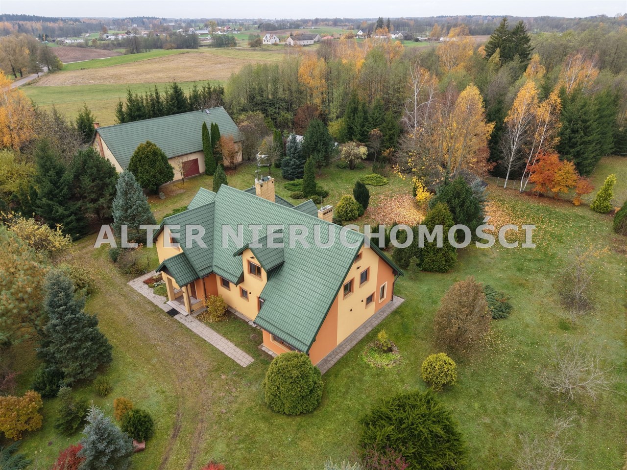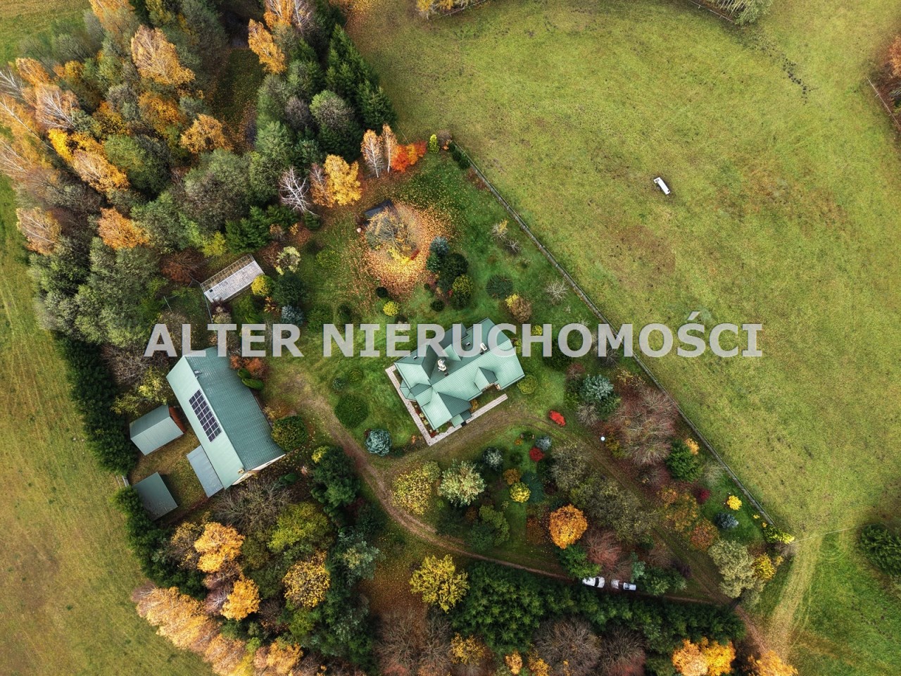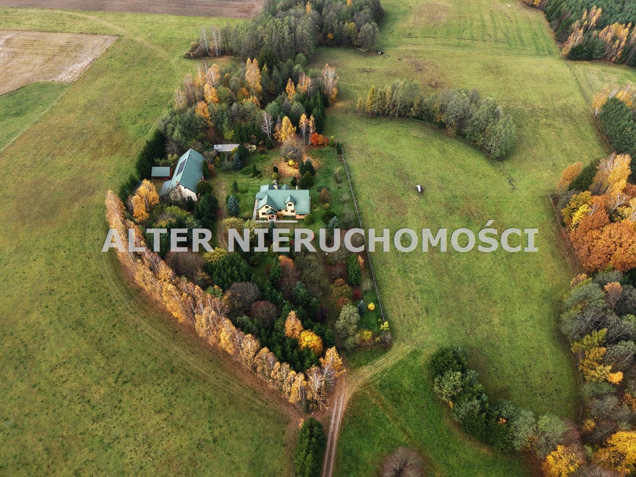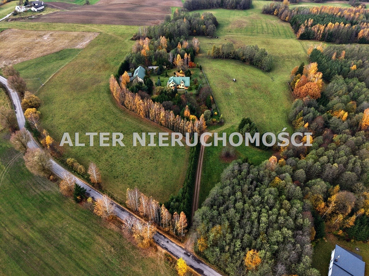 Do nieruchomości prowadzi urokliwy i  wygodny dojazd  poprzez aleję nasadzeń do reprezentacyjnej bramy otwieranej na pilot.