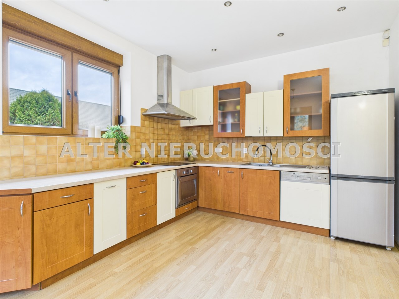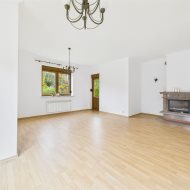 Na parterze znajduje się przestronny salon (36 m²) z kominkiem, pełen światła, z widokiem na ogród. Obok oddzielna kuchnia (18,9 m²) z zabudową, w której poranna kawa smakuje inaczej niż w mieście.