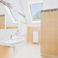 Z holu wchodzi się do garderoby i prywatnej strefy sypialnianej z łazienką i gabinetem lub garderobą. Dwie kolejne sypialnie oraz łazienka z wanną z hydromasażem dopełniają tę część domu.
