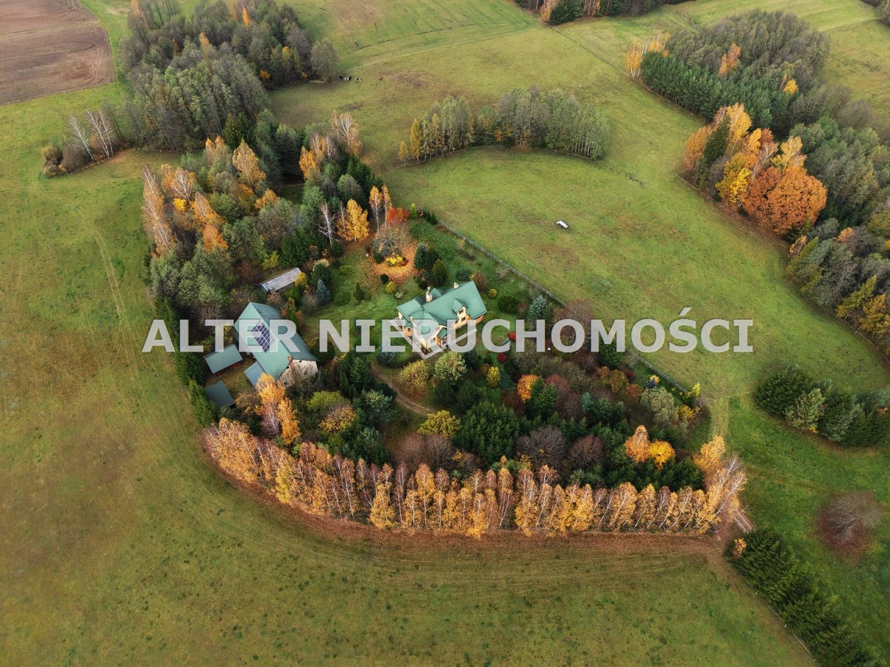 • Dodatkowym atutem jest wydzielone siedlisko o powierzchni 9099 m², a działka daje  możliwość dalszej zabudowy z bezpośrednim zjazdem z drogi głównej.