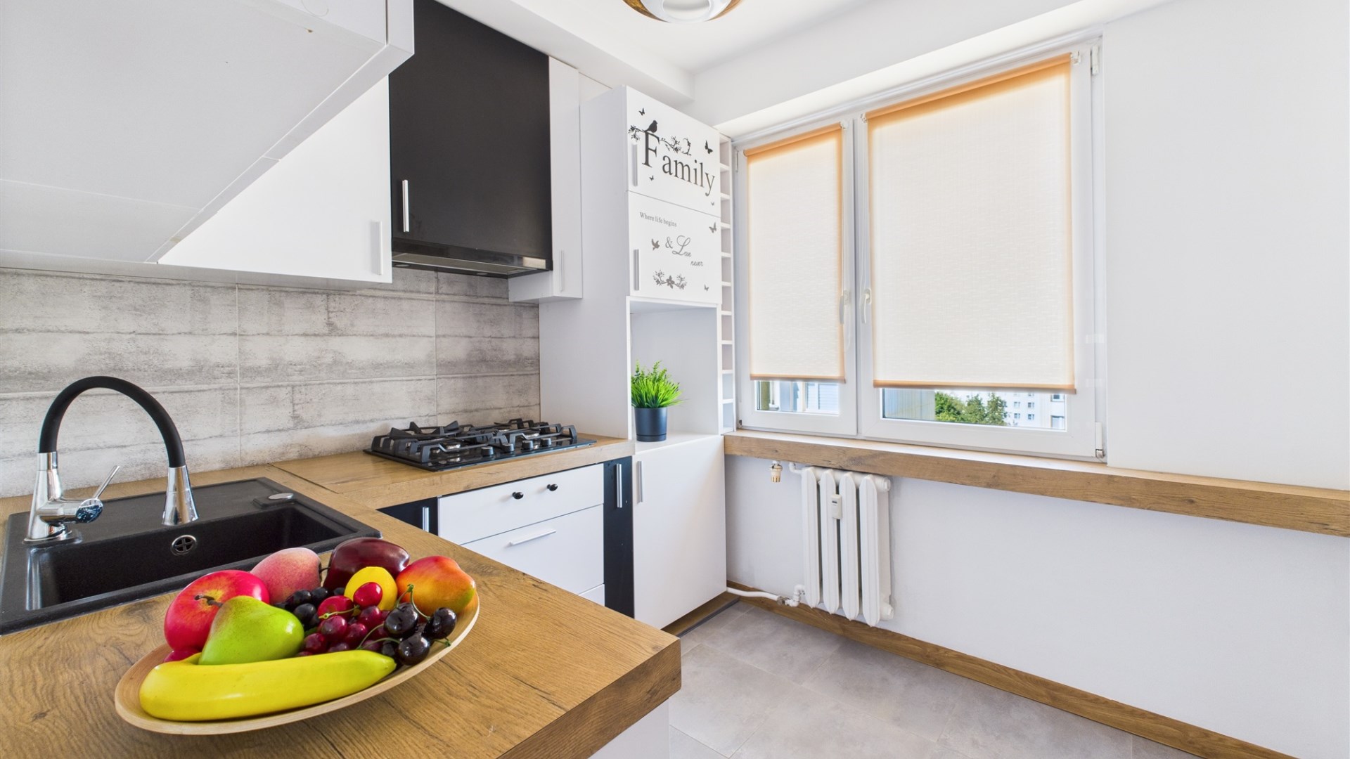Mieszkanie jest dwustronne - światło wpada tu z dwóch stron świata (południowo-zachodnia i północno-wschodnia), co nie tylko doświetla wnętrza, ale też pozwala cieszyć się słońcem wtedy, kiedy tego potrzebujesz.