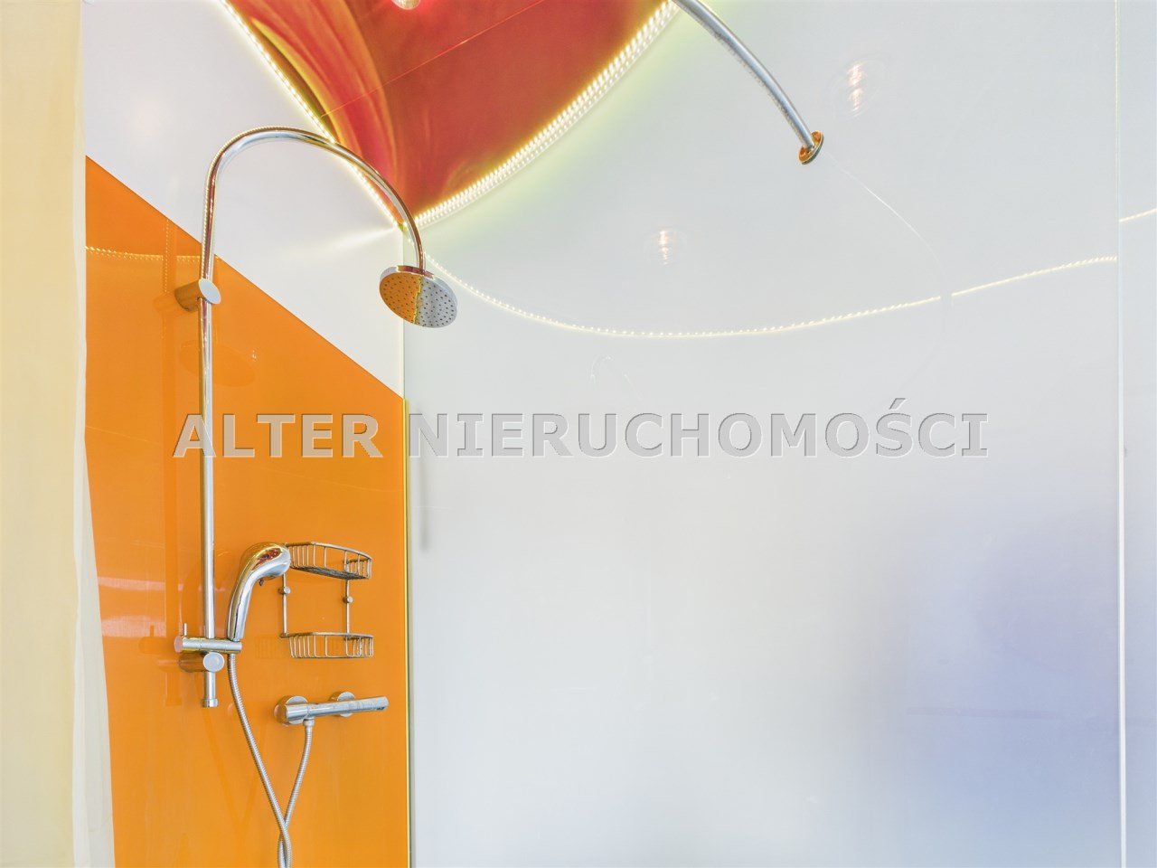 • Łazienka – wykończona z dużą dbałością o detale. Oświetlenie LED, niebanalne płytki i unikatowy charakter przestrzeni.
