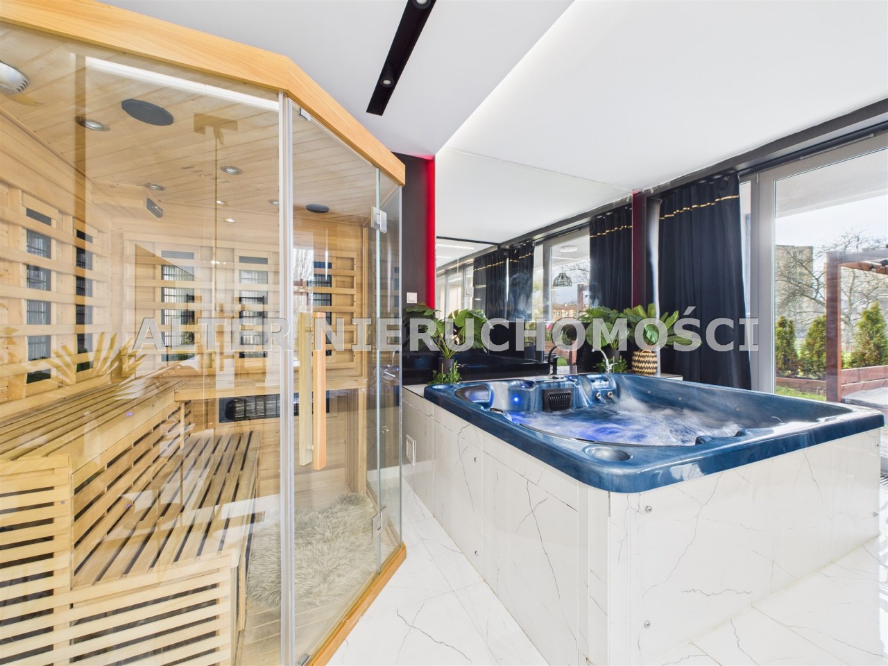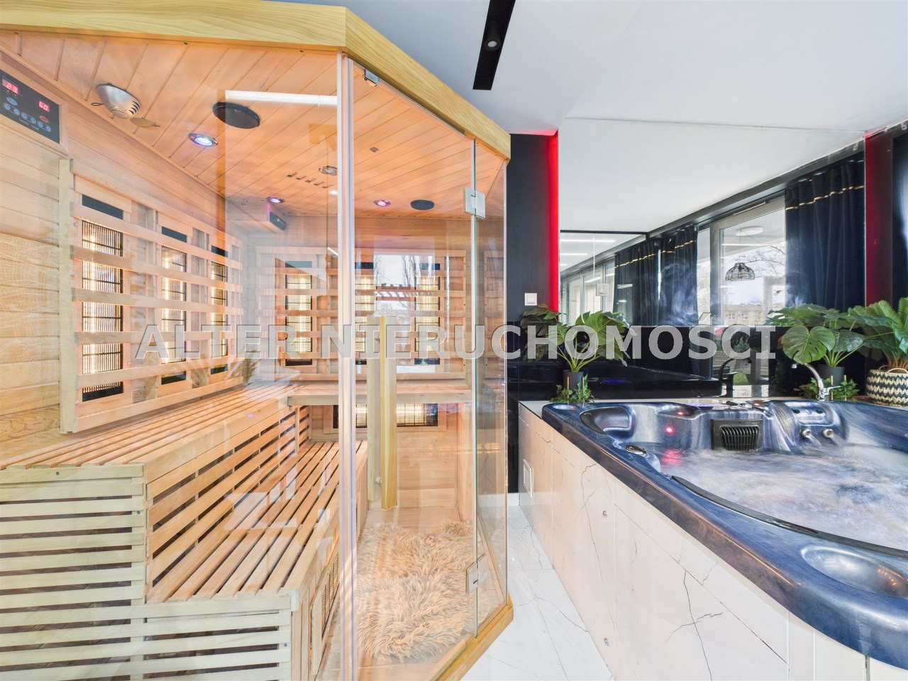 Prywatna strefa SPA: pełnowymiarowy system Jacuzzi oraz sauna – idealne na relaks po dniu pełnym wrażeń. nastrojowe oświetlenie budujące intymną atmosferę, luksus, który masz na wyłączność.