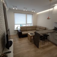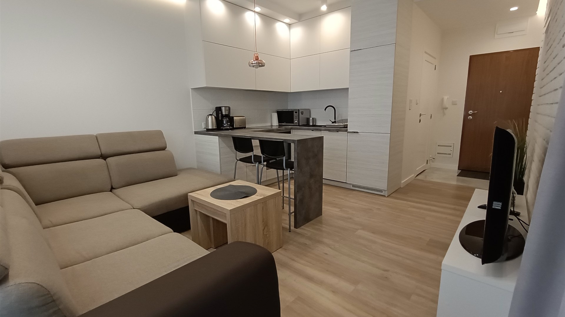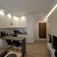 Mieszkanie jest wykończone, umeblowane i wyposażone we wszystkie niezbędne sprzęty AGD i RTV - nic, tylko wnosić walizki i mieszkać!