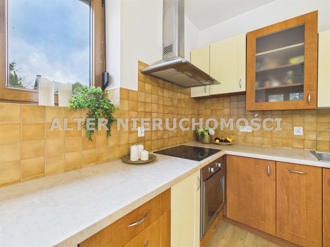 Na parterze znajduje się przestronny salon (36 m²) z kominkiem, pełen światła, z widokiem na ogród. Obok oddzielna kuchnia (18,9 m²) z zabudową, w której poranna kawa smakuje inaczej niż w mieście.