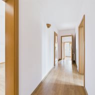 Wnętrze emanuje spokojem i przytulnością. Wysokie pomieszczenia, światło wpadające przez drewniane okna i naturalne materiały tworzą przyjazną atmosferę.  Już od progu czuć, że to miejsce powstało z myślą o rodzinie, o czasie, o życiu w rytmie natury.