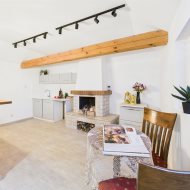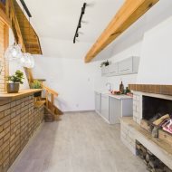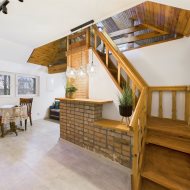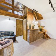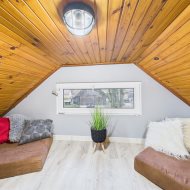 Kompaktowy, drewniany domek został zaprojektowany tak, by w pełni wykorzystać każdy metr kwadratowy, tworząc przytulną i funkcjonalną przestrzeń: