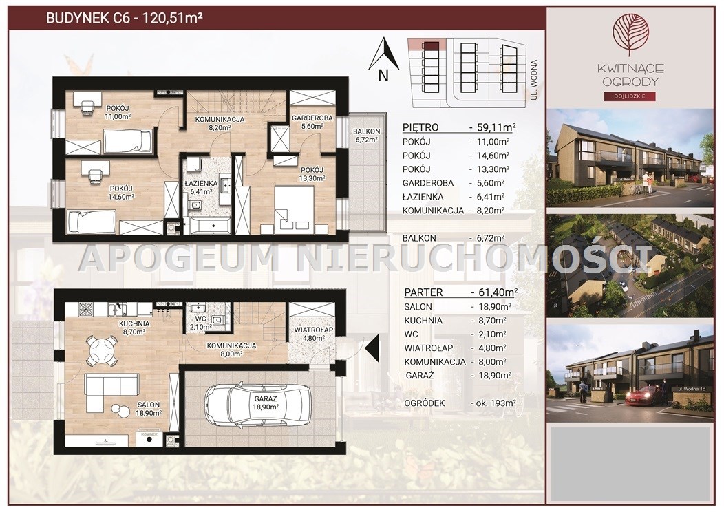 Oferujemy do sprzedaży segment C6 w inwestycji "Kwitnące Ogrody Dojlidzkie" składającej się z 16 budynków mieszkalnych jednorodzinnych, niepodpiwniczonych w zabudowie szeregowej położonych w Białymstoku przy ul. Wodnej na osiedlu Dojlidy Górne.
