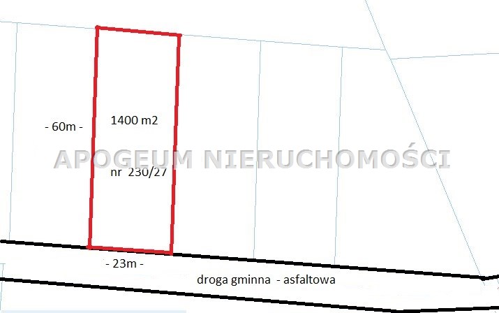 Oferowana działka o powierzchni 1400 m² jest idealnym miejscem na budowę wymarzonego domu lub inwestycja kapitału.