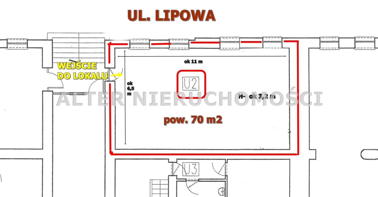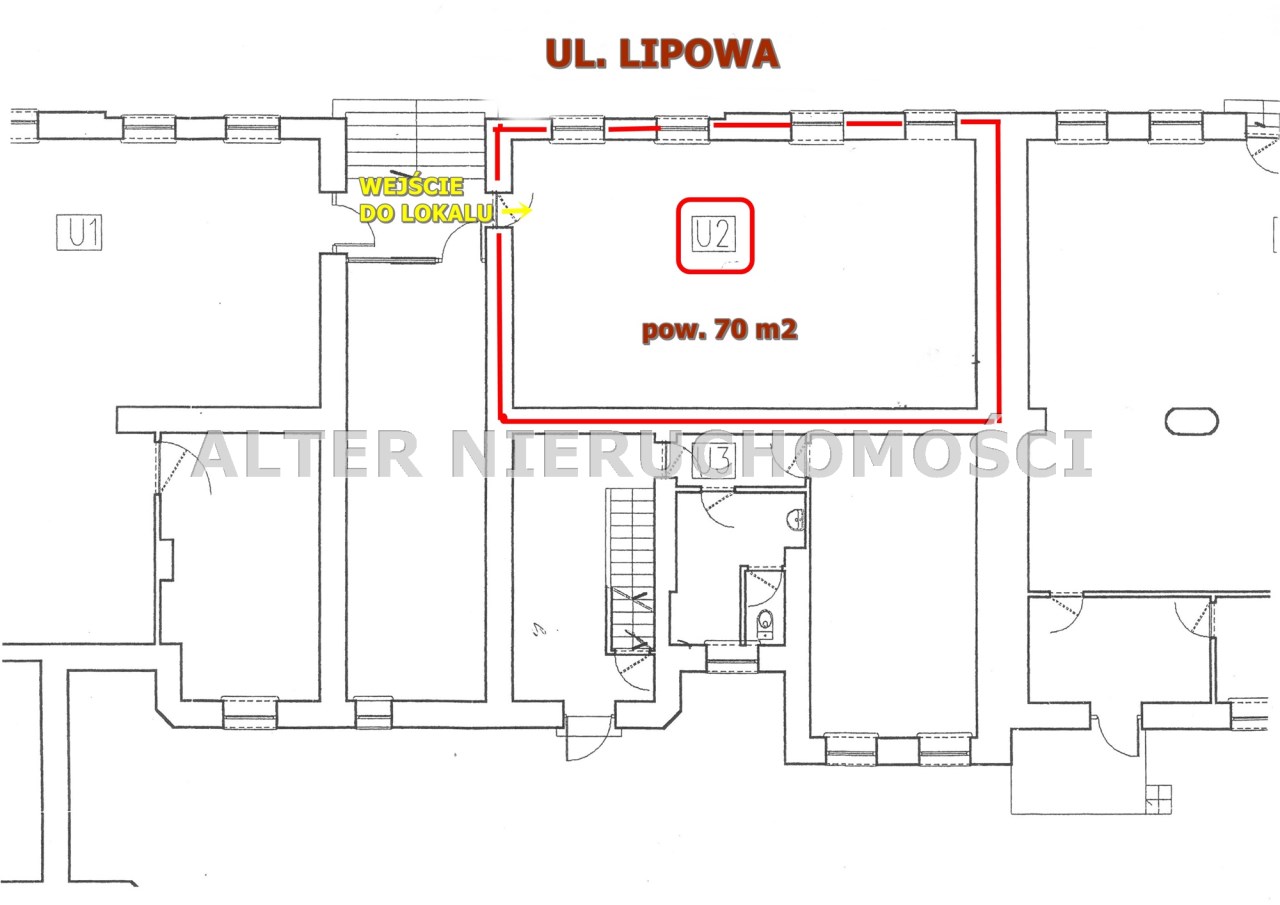 Lokal jest dobrze doświetlony dzięki dużym witrynom wychodzącym na ulicę Lipową.