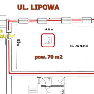 Lokal o powierzchni 70 m2 składa się z dużej sali sprzedażowej, pomieszczenia socjalnego, i łazienki z wc.