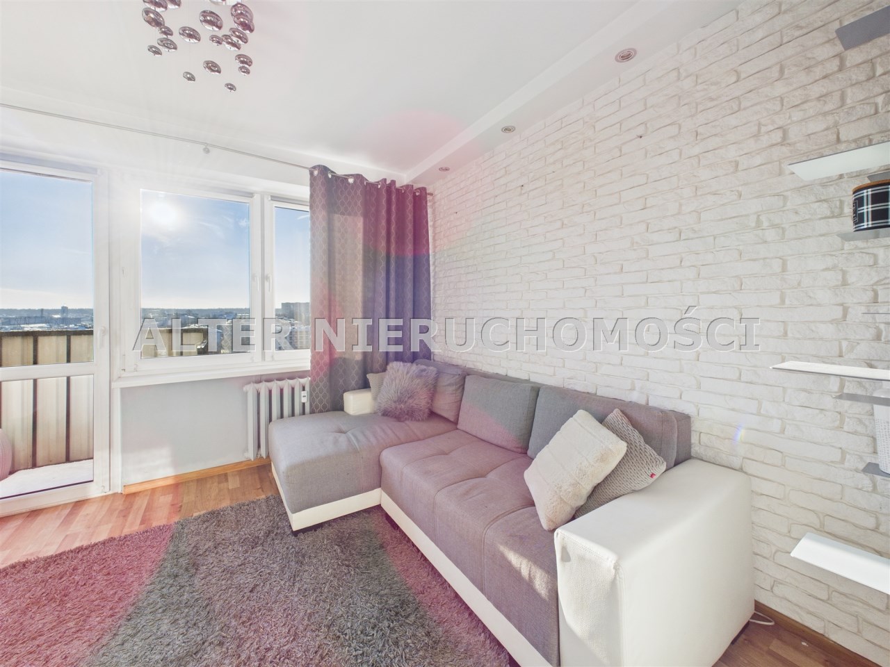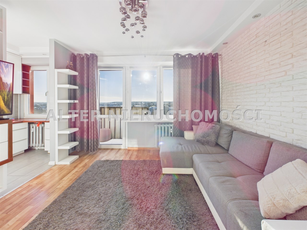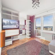 Salon (12,5 m²) – z wyjściem na niewielki balkon (1,4 m2), z którego rozpościera się piękny widok na panoramę miasta!