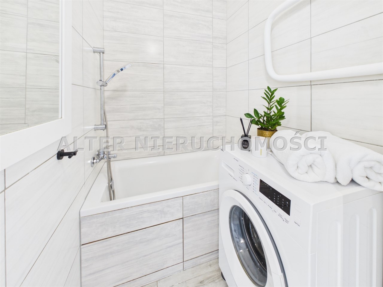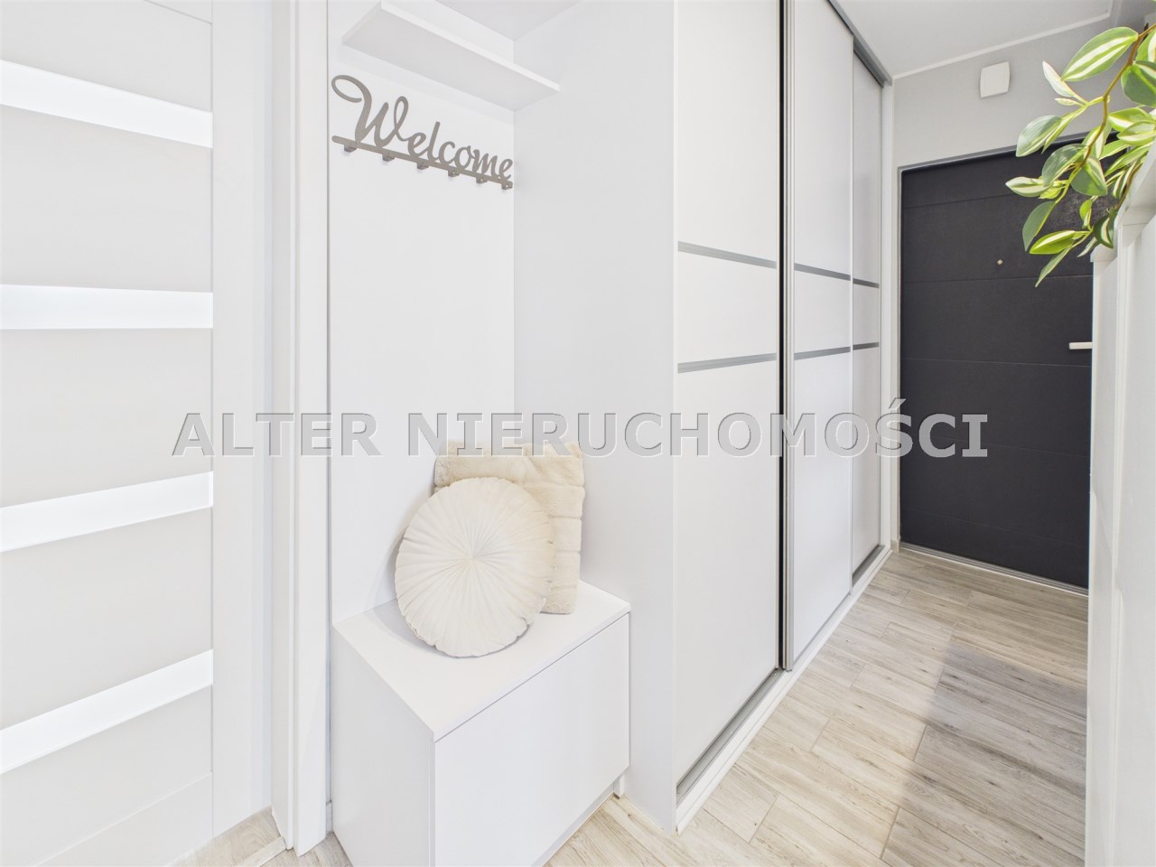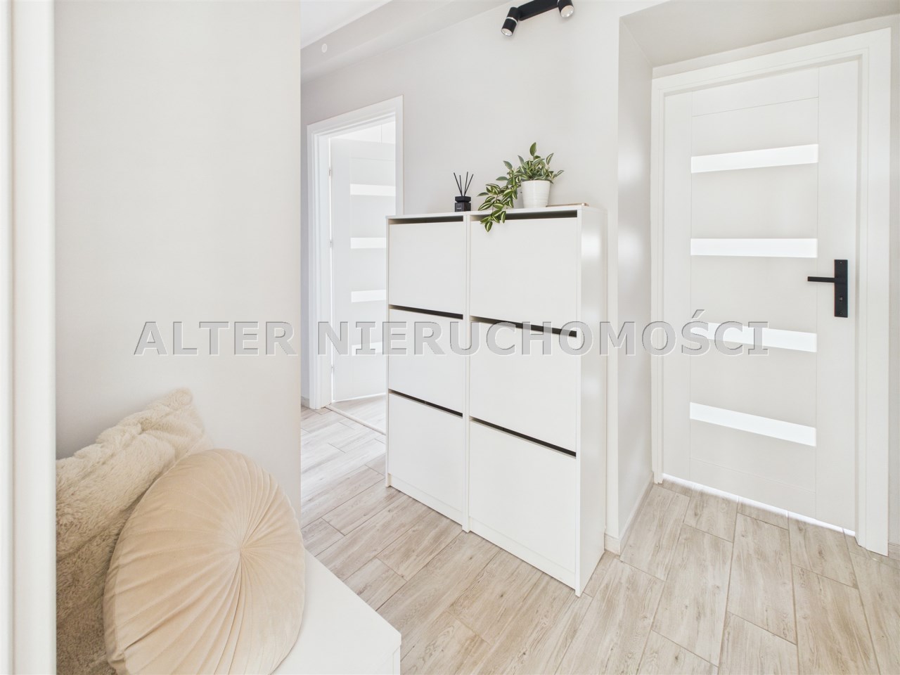 Mieszkanie jest w pełni wykończone i urządzone w nowoczesnym, uniwersalnym stylu opartym na jasnych barwach i odcieniach szarości. Dzięki temu wnętrze jest spójne, estetyczne i gotowe do zamieszkania bez konieczności wprowadzania zmian.