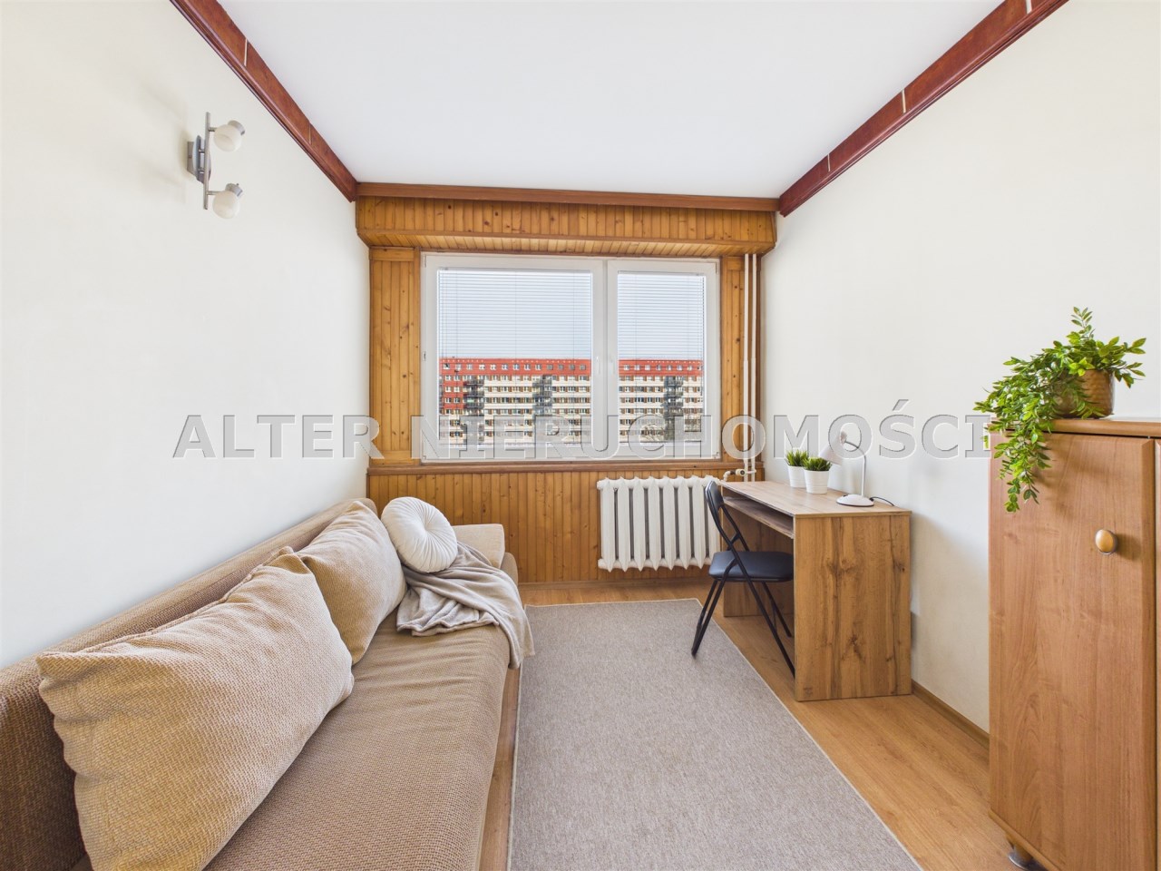 Układ uzupełnia oddzielna, urządzona kuchnia z zabudową, łazienka w ponadczasowej bieli oraz osobne WC – rozwiązanie szczególnie wygodne przy większej liczbie mieszkańców. W mieszkaniu wymieniono okna oraz położono panele podłogowe. Ściany wymagają odświeżenia, co daje możliwość nadania wnętrzu własnego stylu bez konieczności przeprowadzania kosztownego remontu generalnego.