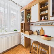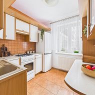 Kuchnia: Oddzielna, widna i bardzo ustawna. Duża ilość blatu roboczego i szafek sprawia, że gotowanie jest tu czystą przyjemnością.