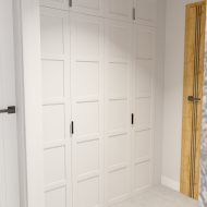 W przedpokoju znajdzie się pojemna szafa wykonana również przez stolarza.
