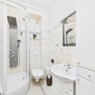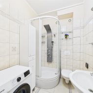 W łazience czeka na Ciebie kabina z hydromasażem, umywalka, WC oraz pralka. To idealne miejsce, aby zrelaksować się i odświeżyć po ciężkim dniu.